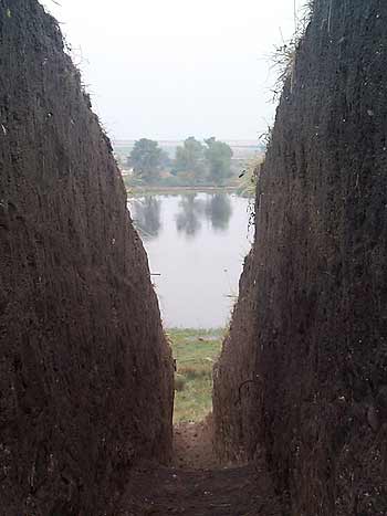 The last archaeological traces from Lîga stem from two big but shallow pits containing waste brought from a settlement of the 5-6 th centuries AD. The settlement itself was lying at the stream, some 200 m N-NW of the site. This settlement was actually excavated by local looters, who even copied our trenching strategy!